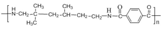 英文名:Semi-aromatic nylon,又稱無定形聚酰胺,化學名稱為:聚對苯二甲酰三甲基己二胺。其分子結(jié)構(gòu)式為: