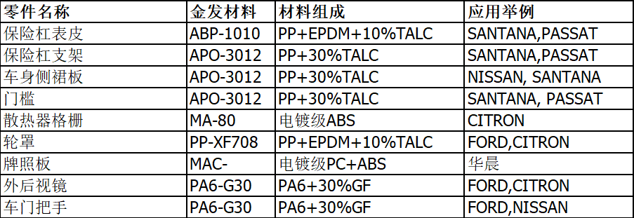 其他外飾件種類及其應(yīng)用材料