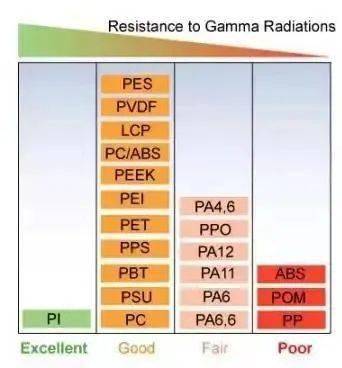 替代傳統(tǒng)的金屬材料的各種塑料的耐伽瑪射線能力:
